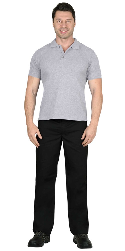 Рубашка-поло меланж серый короткие рукава с манжетом, пл.180 г/м2 (ЧЗ)
