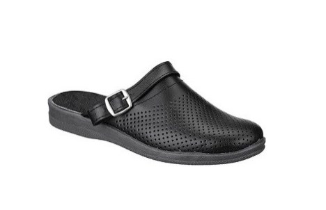 Перфорированная кожа в мужских сабо создает дополнительную вентиляцию. Поворотный регулируемый ремешок может располагаться спереди и сзади, для фиксации пятки и декоративного элемента на изделии. Удобная модель предназначена для использования в сфере обслуживания, легкой промышленности, медицины.