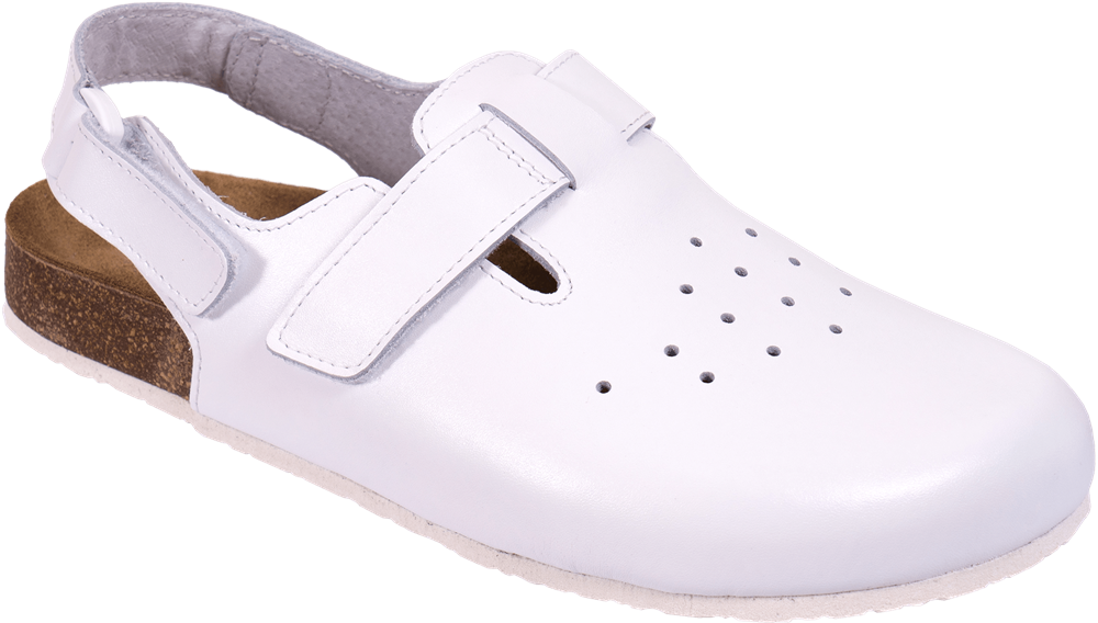 Особенности: Модель отличается практичным дизайном и нескользящей, натуральной пробковой подошвой премиального качества, которая обладает теплоизоляционными свойствами. Специально установленные липучки служат для регуляции объема сабо, а наличие сквозной перфорации способствует циркуляции воздуха и препятствует образованию влаги внутри обуви.