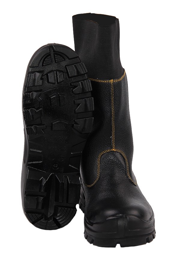 Обувь специальная серии ТОПГАРД с верхом из кожи, на термостойкой (контакт с нагретыми поверхностями до +160°С в течение 30 мин., +300°С в течение 60 сек), маслобензостойкой, кислотощёлочестойкой, антивибрационной однослойной подошве из резины литьевого метода крепления с последующей вулканизацией, в том числе с антистатическими свойствами, для защиты от общих производственных загрязнений и механических воздействий (с внутренним защитным композитным подноском ударной прочностью 200 Дж); от скольжения; от химических факторов (нефти, нефтепродуктов, в том числе от кислот и щелочей концентрацией до 20%); в том числе от повышенных температур, искр и брызг расплавленного металла; в том числе для защиты от термических рисков электрической дуги, применяемые в комплекте СИЗ для защиты от термических рисков электрической дуги.