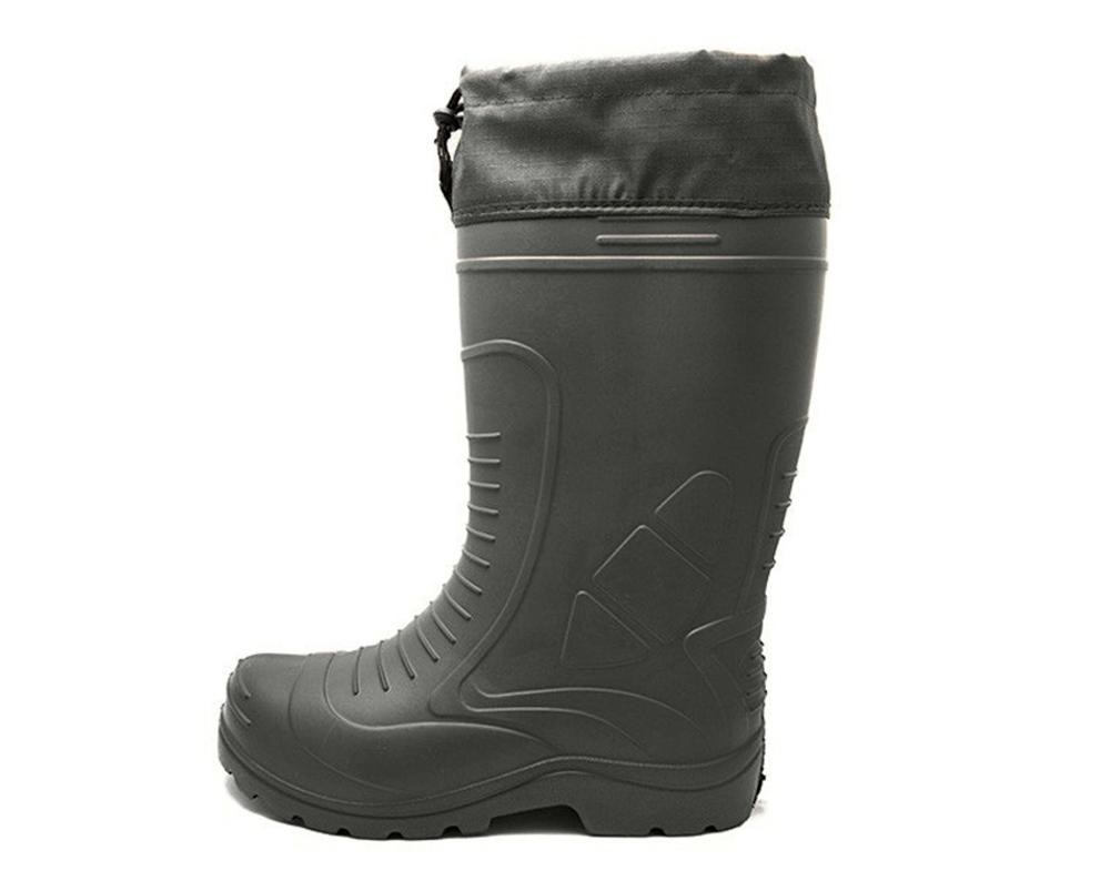 В сапогах ЭВА "КАНТРИ" расположен клапан-манжет, выполненный из водоотталкивающей ткани (Оксфорд) с возможностью регулировки по ноге. Внутри сапог 4-слойный сменный вкладыш (чулок), льняное полотно, искусственный мех. Фольгированная сетка сохраняет тепло. Сапоги ЭВА «КАНТРИ» рассчитаны на эксплуатацию при низких температурах (до -30С).