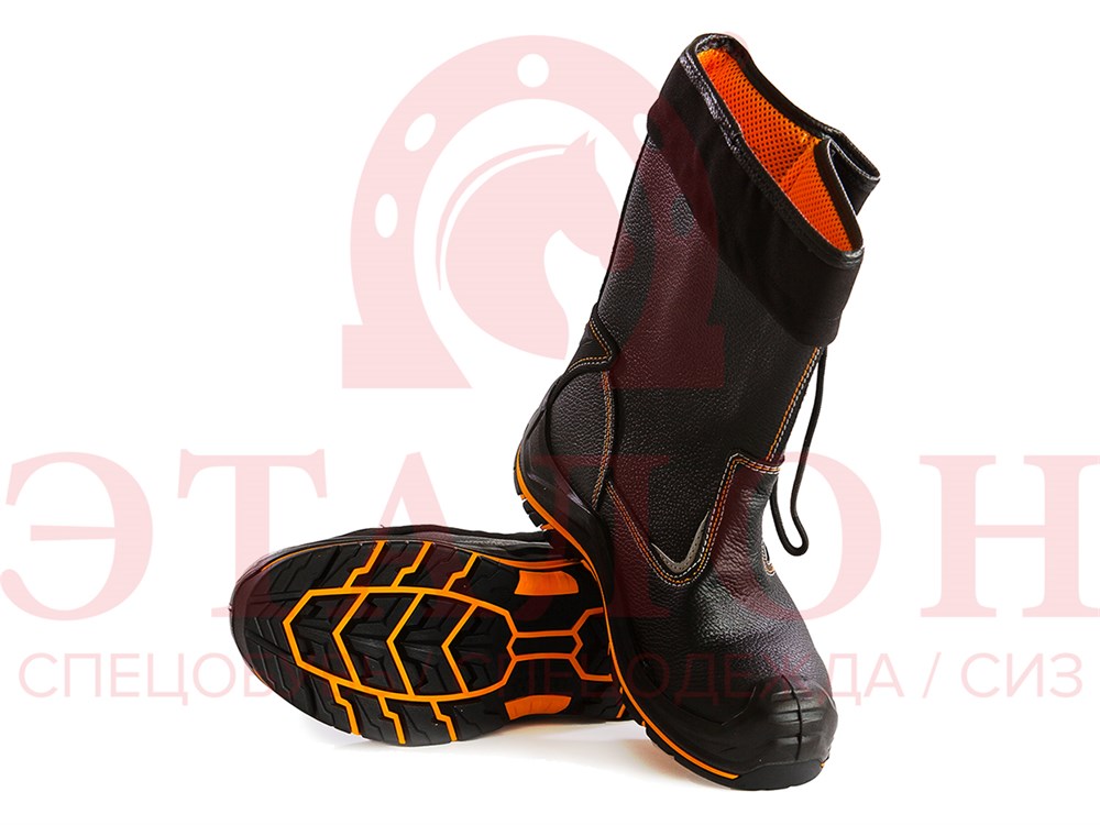 Подошва – двухслойная, устойчивая к воздействию нефти, нефтепродуктов, щелочей концентрации до 20%, повышенных температур. Верхний слой из полиуретана обладает амортизирующими свойствами, гасит ударные нагрузки, а также придает обуви легкость, комфортность и повышенные теплозащитные свойства. Ходовой слой изготовлен из износостойкой, термостойкой (+300°С / 60 с), морозостойкой резины на основе нитрильного каучука с улучшенным сопротивлением скольжению, стойкостью к деформациям, истиранию. Носочная часть имеет дополнительную защиту в виде полиуретановой накладки, предотвращающей механические повреждения обуви и препятствующей проникновению холода. Для защиты от ударов в носочной части стопы в обуви применяется композитный подносок (Мун 200), имеющий конфигурацию, препятствующую надавливанию верхнего края на стопу, и оборудованный прокладкой из полиуретана.