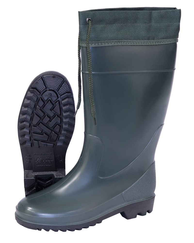 Верх из ткани с водоотталкивающей пропиткой. Сверху затягивается шнуром, который препятствует проникновению грязи и воды внутрь сапог. Размеры: 40-46.