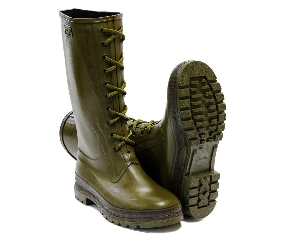 Мужские резиновые сапоги для охоты от фирмы TIGAR, разработанные и произведённые в Сербии – невероятная находка для любителей рыбалки. Сапоги ручной работы из натуральной резины прослужат очень долго. Резина – это полная изоляция от воды, грязи и снега, потрясающий комфорт. Толстая, не скользящая подошва, укрепленная металлом, не прорвется ветками, не сгибается, дает хорошую опору на лабазе. Есть металлическая защита щиколотки – нога отлично защищена. Резиновые сапоги из Европы - предмет гордости любого охотника. В данной модели продумана каждая мелочь. Модель обеспечивает удобную посадку, надёжную фиксацию на ноге с возможностью регулировки голенища и защиту от холода зимой. Верх обуви изготовлен из натуральной и искусственной резины, нескользящая подошва – из синтетической морозостойкой резины. Благодаря шнуркам сапоги отлично сидят на ноге, снег и листья не засыпаются. Специальный упор на пятке помогает легко снять сапог, не пачкая руки. Благодаря утеплению из хлопковой подкладки вам будет сухо в болоте, тепло в снегу. Сапоги из каучука превосходят в прочности сапоги из ПВХ и намного более износостойкие, чем лёгкие сапоги ЭВА.