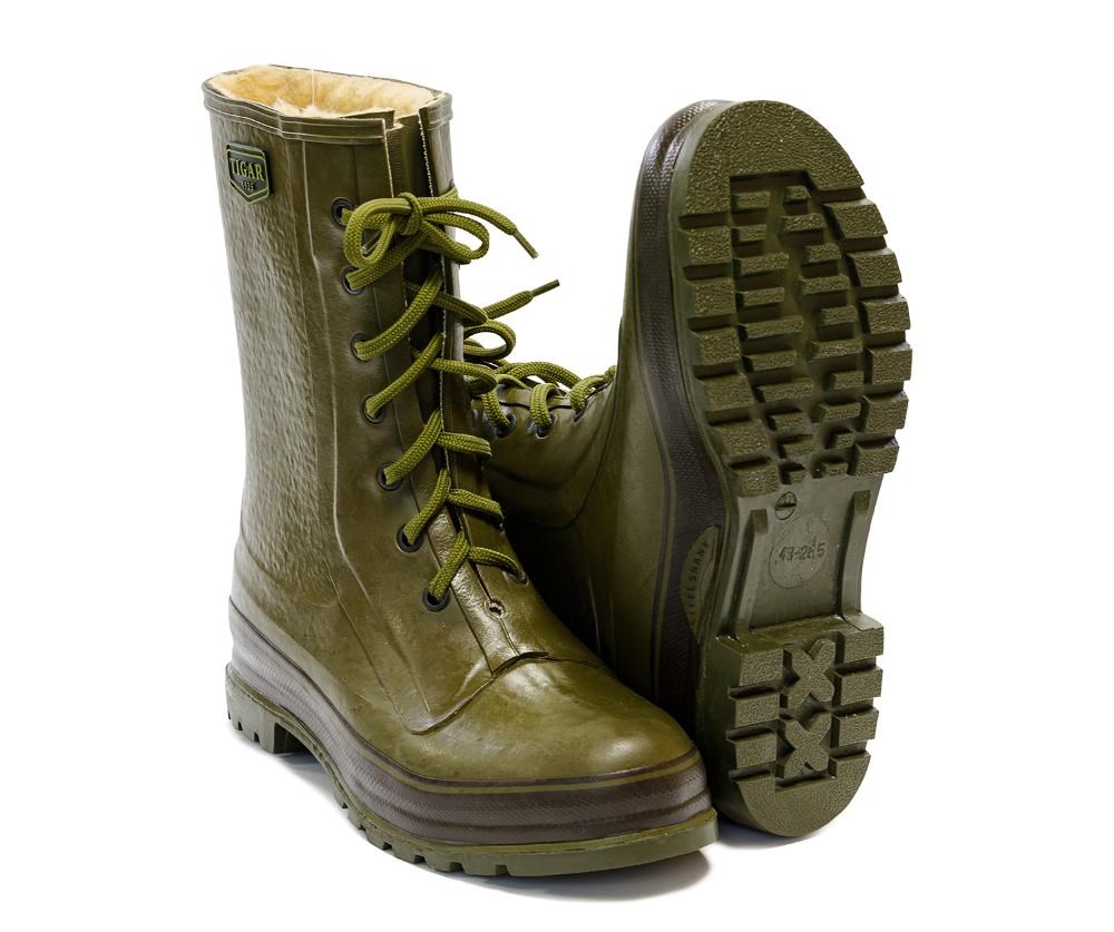 Мужские резиновые сапоги для охоты от фирмы TIGAR, разработанные и произведённые в Сербии – невероятная находка для любителей рыбалки. Сапоги ручной работы из натуральной резины прослужат очень долго. Резина – это полная изоляция от воды, грязи и снега, потрясающий комфорт. Толстая, не скользящая подошва, укрепленная металлом, не прорвется ветками, не сгибается, дает хорошую опору на лабазе. Резиновые сапоги из Европы - предмет гордости любого охотника. В данной модели продумана каждая мелочь. Модель обеспечивает удобную посадку, надёжную фиксацию на ноге с возможностью регулировки голенища и защиту от холода зимой. Верх обуви изготовлен из натуральной и искусственной резины, нескользящая подошва – из синтетической морозостойкой резины. Благодаря шнуркам сапоги отлично сидят на ноге, снег и листья не засыпаются. Специальный упор на пятке помогает легко снять сапог, не пачкая руки. Благодаря утеплению из искусственного меха будет сухо в болоте, тепло в снегу. Сапоги из каучука превосходят в прочности сапоги из ПВХ и намного более износостойкие, чем лёгкие сапоги ЭВА. Металлическая пластина в подошве увеличивает жесткость на изгиб и кручение.