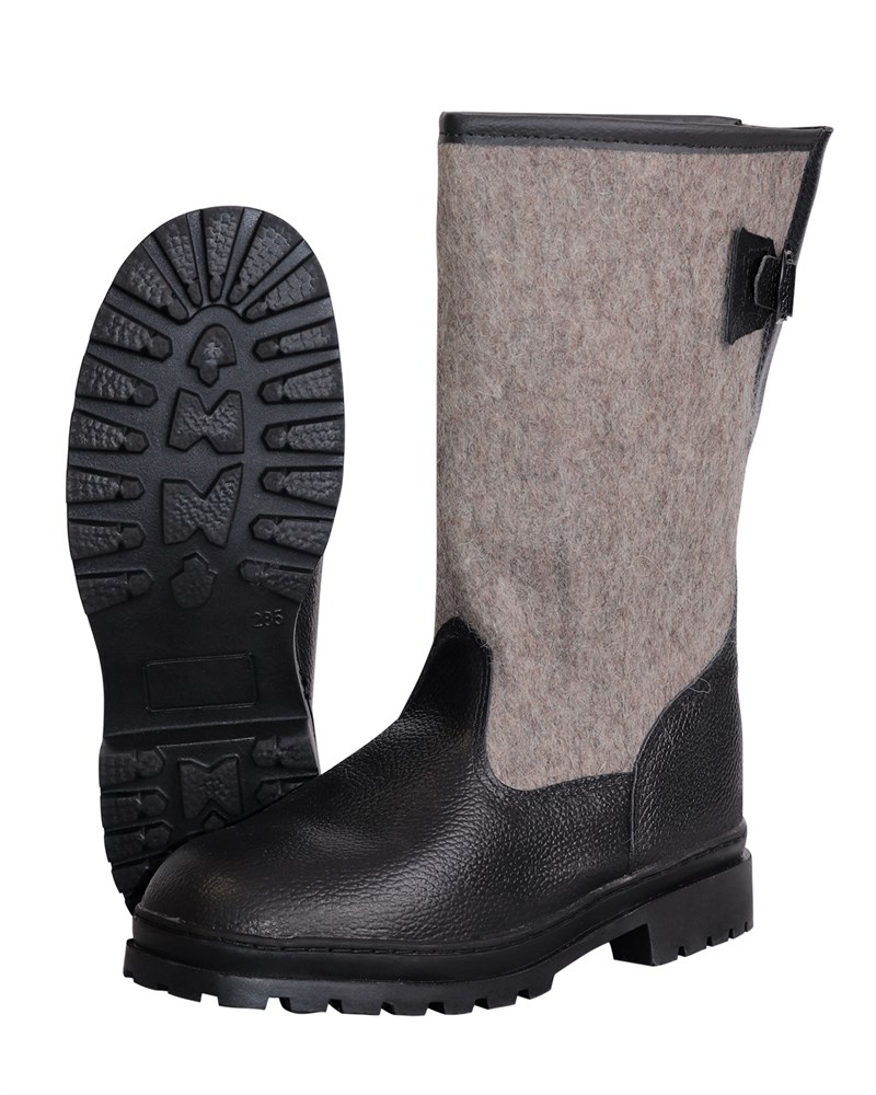 Союзка изготовлена из войлока, продублирована юфтью, голенище - войлок 5-6 мм.