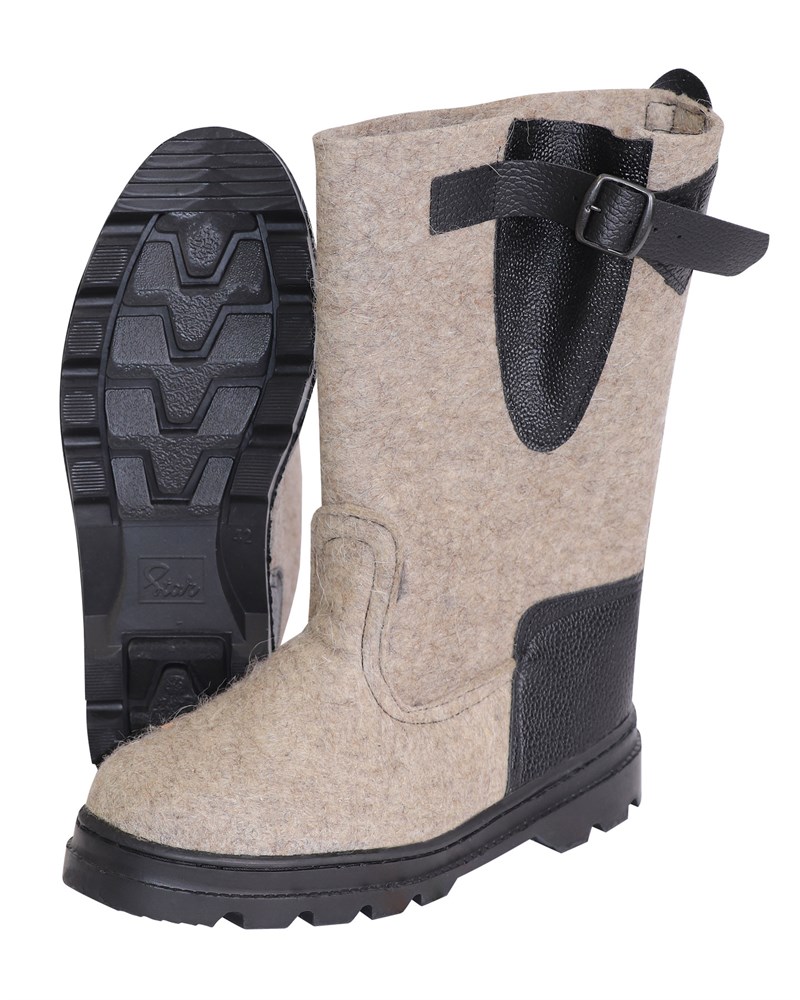 Голенище и союзка: войлок. Подошва: морозостойкая резина, клеепрошивная, регулируемое голенище, фольгированная стелька, Размеры: 40-46. ГОСТ 12.4.187-97.