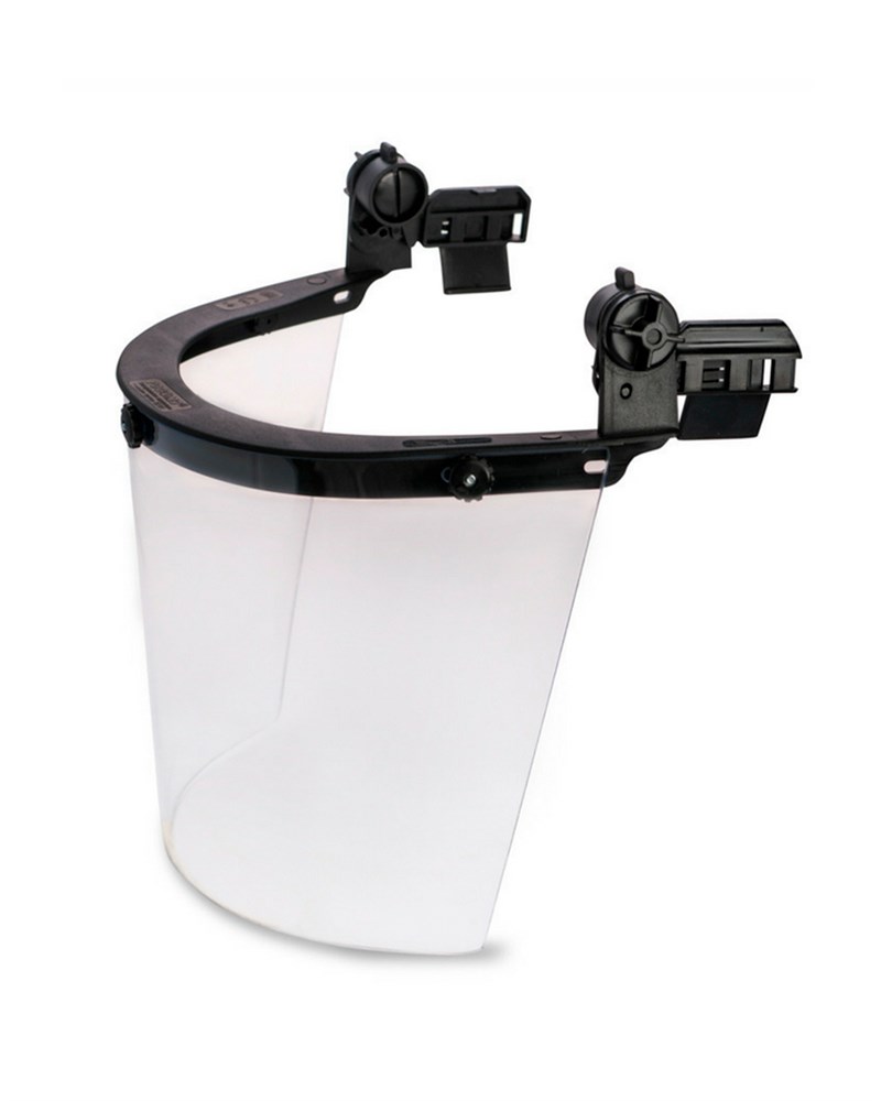 Крепление щитка к защитной каске осуществляется за счет подъемно-фиксирующего устройства, изготовленного из холодо- и термостойкого материала, устойчивого к износу и гарантирующего надёжную фиксацию лицевого щитка в двух положениях «вверх-вниз»
