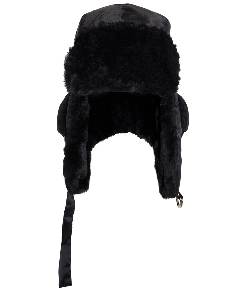 Шапка-ушанка зимняя черная со слуховыми отверстиями, защищенные меховым клапаном.
