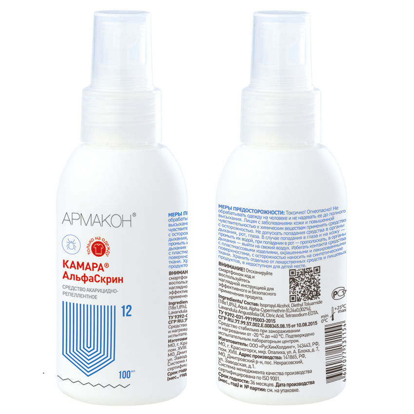 КАМАРА АльфаСкрин относится к 1 категории эффективности репеллентных средств.