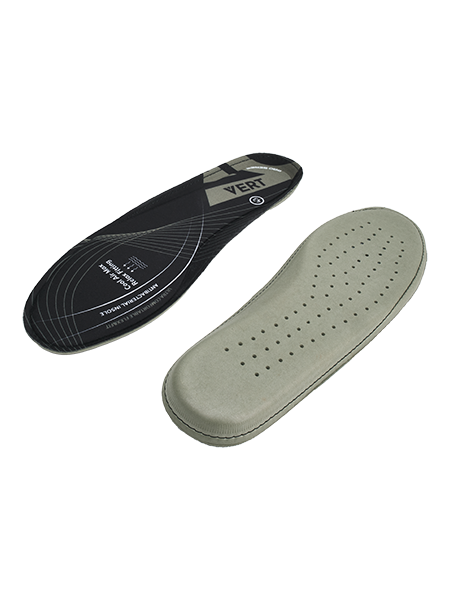 Вкладные стельки VERT обладают амортизирующими свойствами за счёт комбинации слоёв из ЭВА и пенополиуретана. Они гигиеничные, антибактериальные и не теряют своих свойств при длительной носке. Форма стельки повторяет анатомию стопы и снижает нагрузку на суставы при движении.