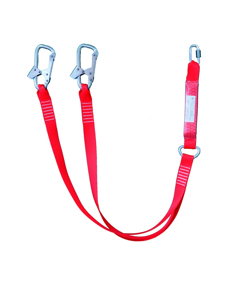 Строп аАд+Кс - страховочный двойной (двуплечий) строп из полиэфирной ленты с амортизатором, двумя монтажными и одним соединительным карабином.