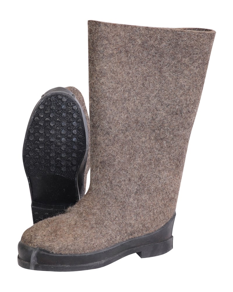 100%-грубая шерсть. Прессовый метод крепления подошвы. Размеры: 36(23) - 47(34). ГОСТ 18724-88.