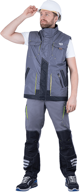 Жилет ЭДВАНС утепленный, серый-т.серый-лимонная отделка