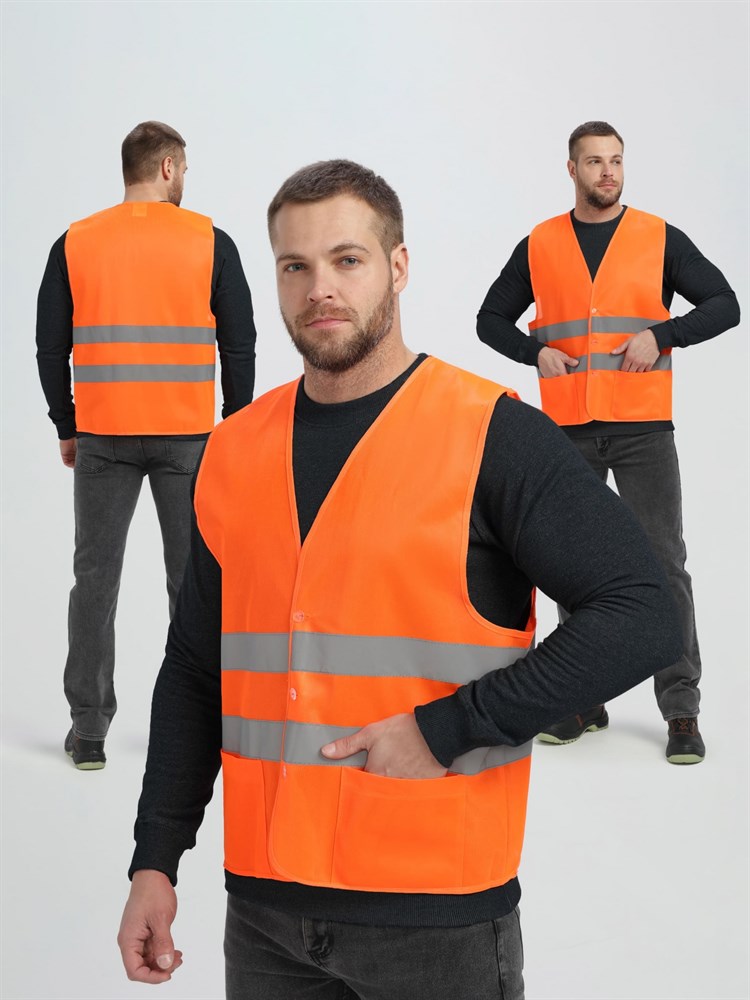 Жилет сигнальный ProfLineBase с пуговицами и карманами (тк.Полиэфир,100), оранжевый