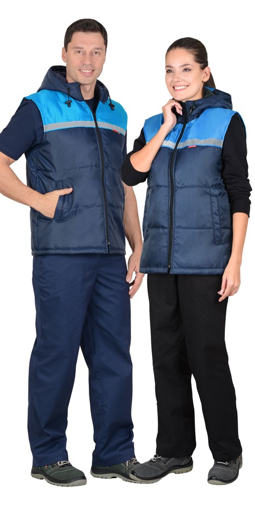 Жилет СИРИУС-ЭКСПРЕСС с капюшоном синий с голубым СОП 25мм
