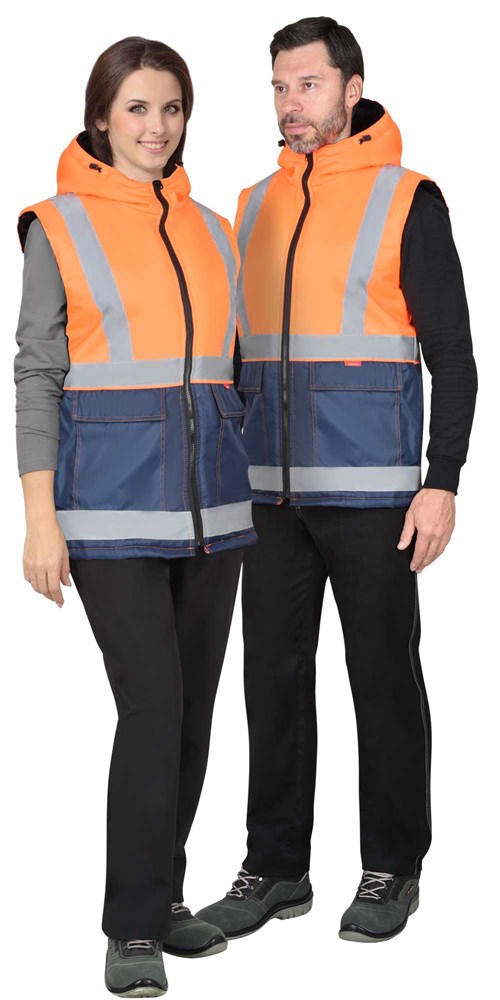 Жилет СИРИУС-ТЕРМИНАЛ с капюшоном темно-синий с оранжевым