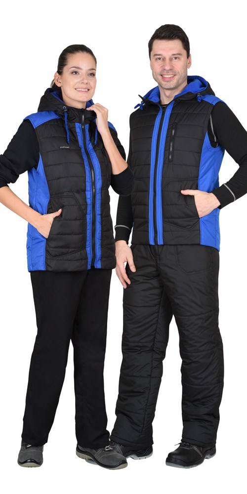 Жилет СИРИУС-УРБАН утепленный с капюшоном черный с васильковым