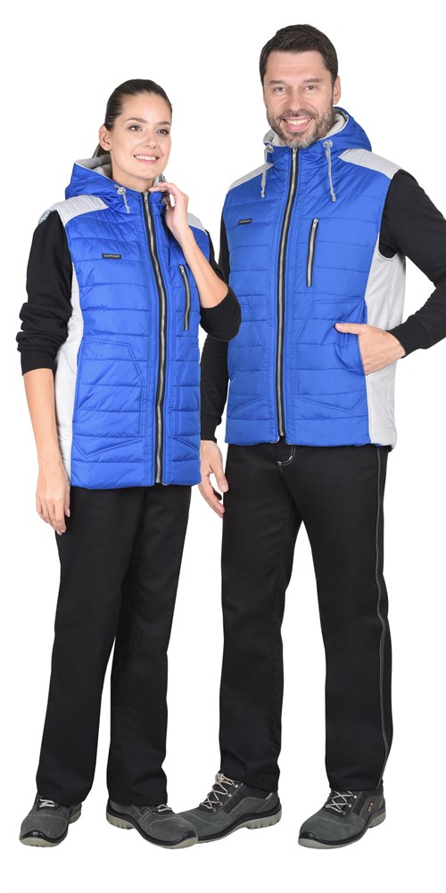 Жилет СИРИУС-УРБАН утепленный с капюшоном васильковый с жемчужным